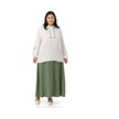 Büyük Beden Nakış Detaylı Bluz Etek Haki İkili Takım Haki