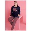 Büyük Beden Pamuklu Ayıcık Desenli Pijama Takımı Lacivert