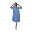 Büyük Beden Yaka Düğmeli Cepli Yırtmaçlı Desenli Midi Boy Viskon Elbise Bebe Mavisi