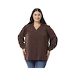 Büyük Beden Yakalı Önü Büzgü Robalı Uzun Kol Kahverengi Gömlek-kahverengi Kahverengi