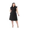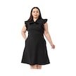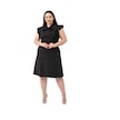 Büyük Beden Yakası Fularlı Kolları Volanlı Midi Siyah Elbise Siyah