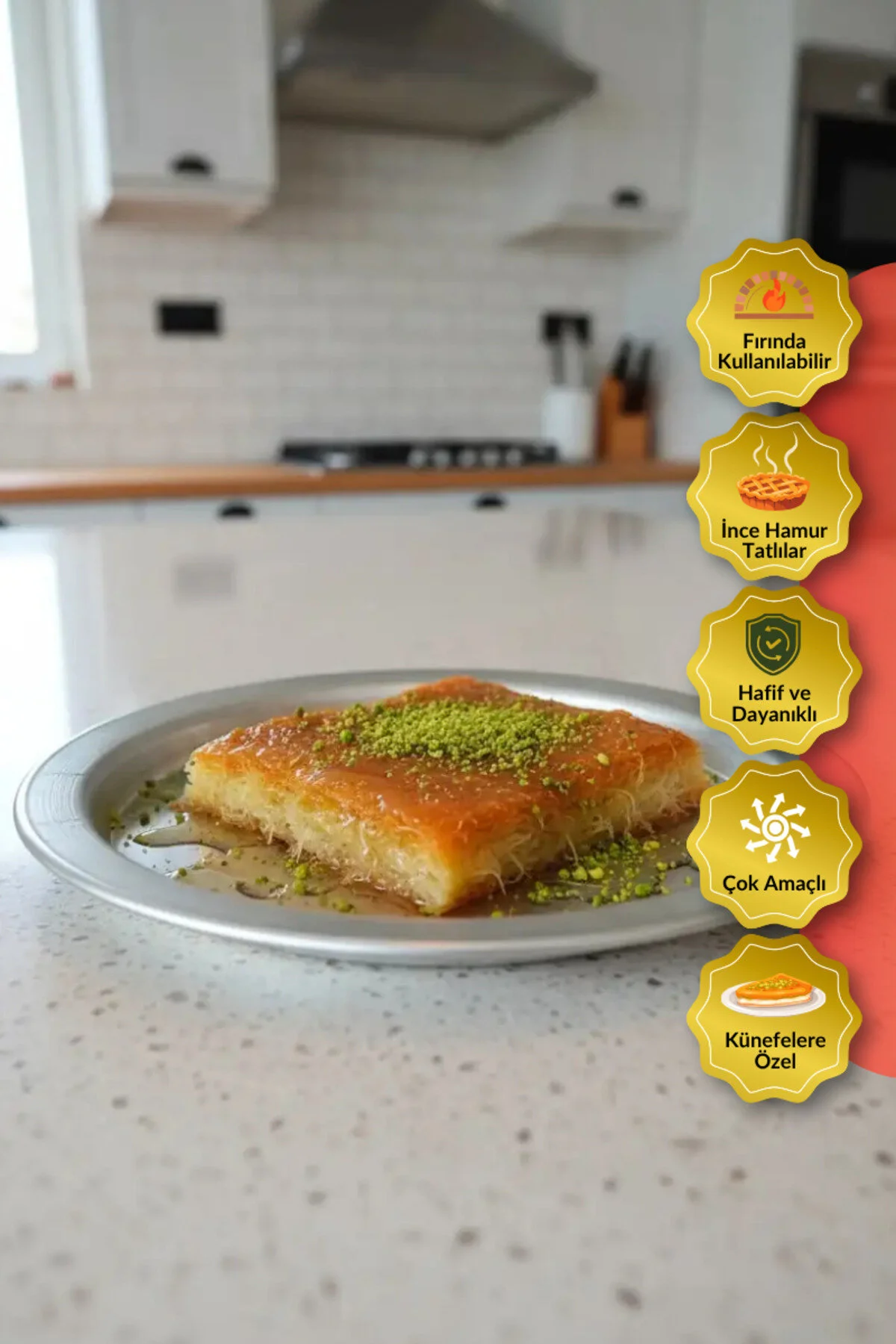 Büyük Boy Künefe Tabağı Ve Pişirme Tepsisi Fırına Girebilir Hafif Dayanıklı Tatlı Tepsisi Gümüş - 31 Cm