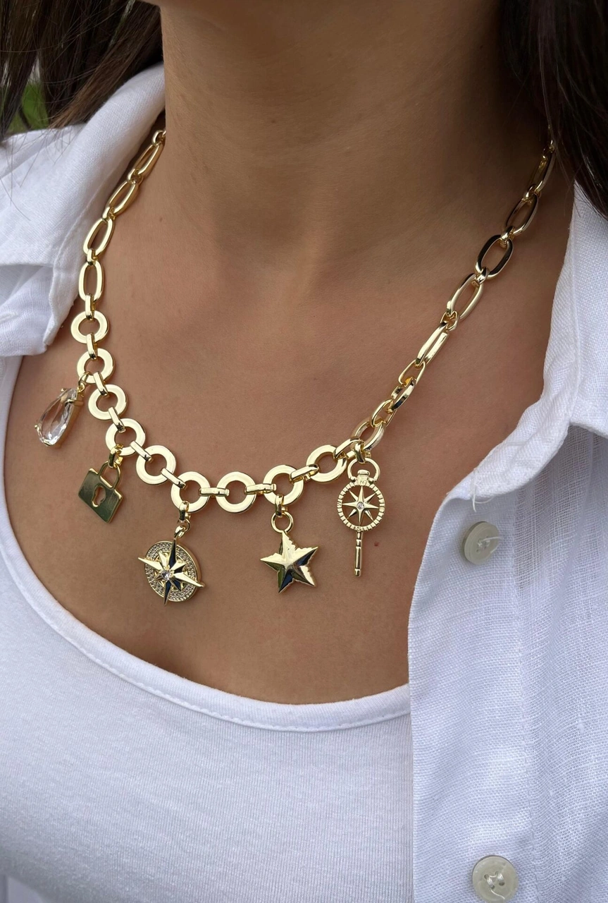 Büyük Charmlı Kolye Çok Renkli