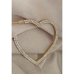 Büyük Kalp Model Beyoğlu Taşlı Abiye Gold Renk Küpe Altın