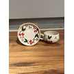 Büyük Kiraz Desenli Tabaklı Seramik Kupa, Mug, Double Türkkahvesi