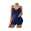 Buz İpek Atlet Pijama Kadın Moda İki Parça Ev Giyim İnce Ev Askılı Şort Takımı Lacivert