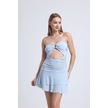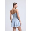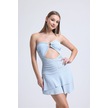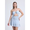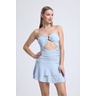 Buz Mavisi Önden Halkalı Bel Kısmı Açık Cift Kat Kloş Etekli Party Elbisesi Buz Mavisi