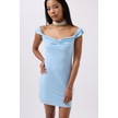 Büzgü Detay Omuz Askılı Mini Elbise Bebe Mavi