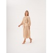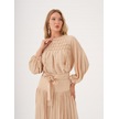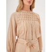 Büzgü Detaylı Kuşaklı Viskon Ve Keten Karışımlı Bluz Bej