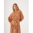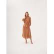 Büzgü Detaylı Kuşaklı Viskon Ve Keten Karışımlı Bluz CAMEL