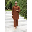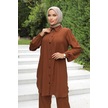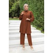 Büzgü Detaylı Tesettür Kahverengi Takım Kahverengi