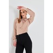 Büzgü Kol Fularlı Gömlek Vizon Vizon