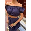 Büzgülü Crop Kat Detaylı Fırfır Etekli Takım 10196 Laci Vert