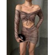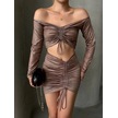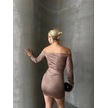 Büzgülü Etek Bluz Takım Kahve S24709 Kahve