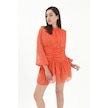 Büzgülü Puantiyeli Şifon Elbise - Turuncu-turuncu