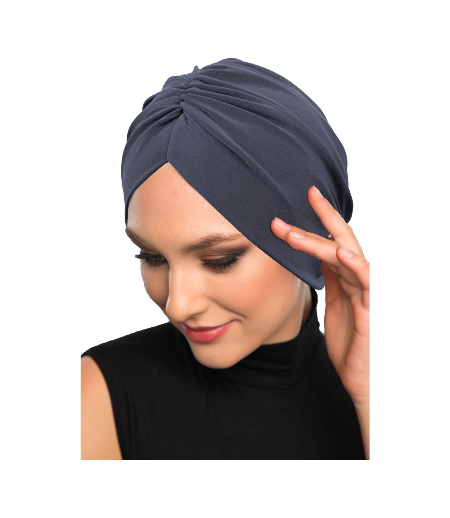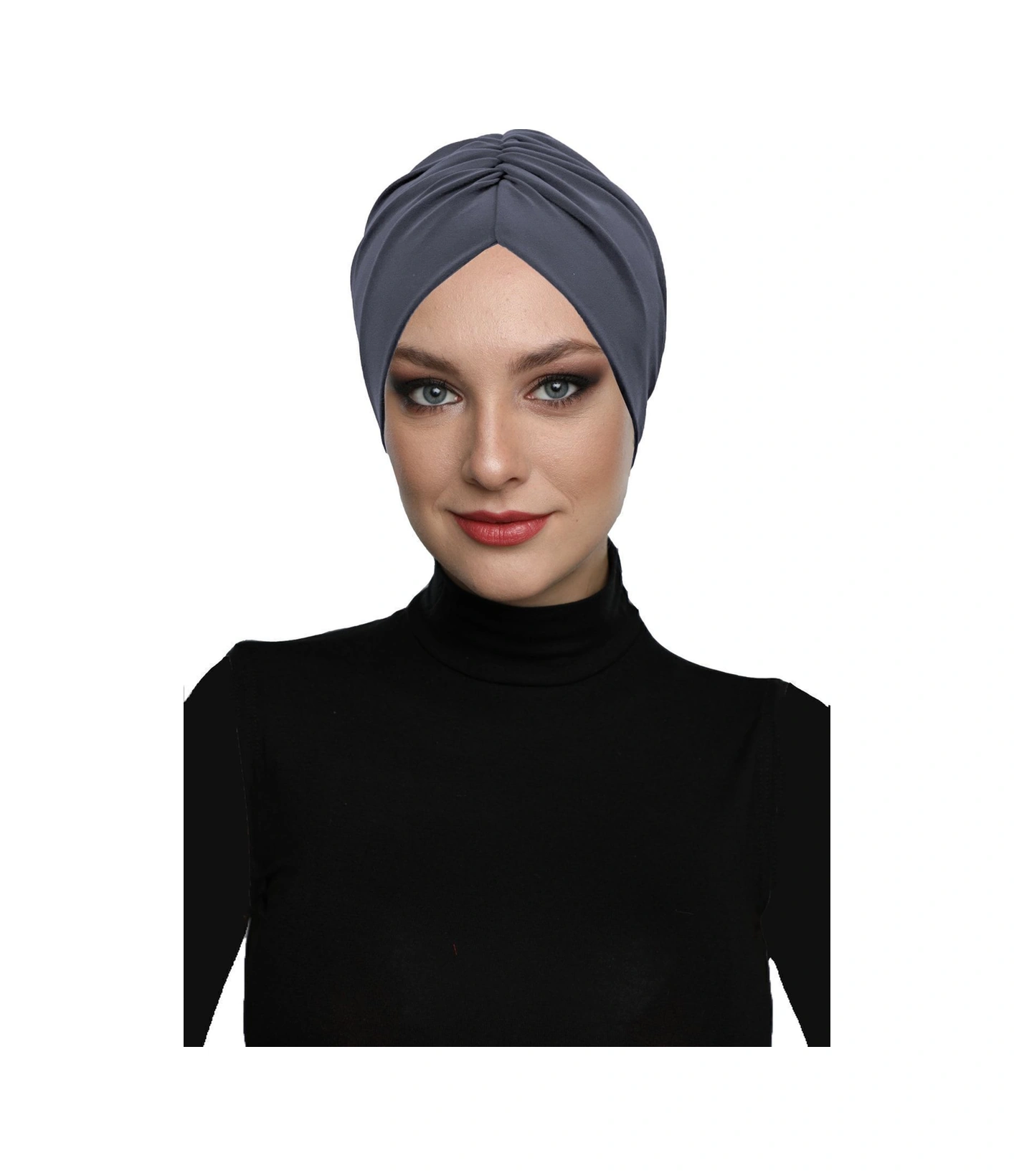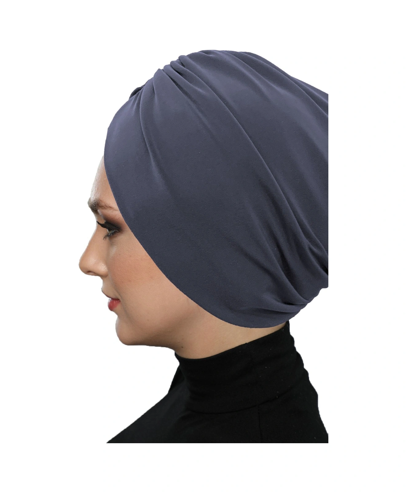 Büzme Çift Taraflı Koyu Gri Hazır Türban Tesettür Havuz Bonesi Koyu Gri