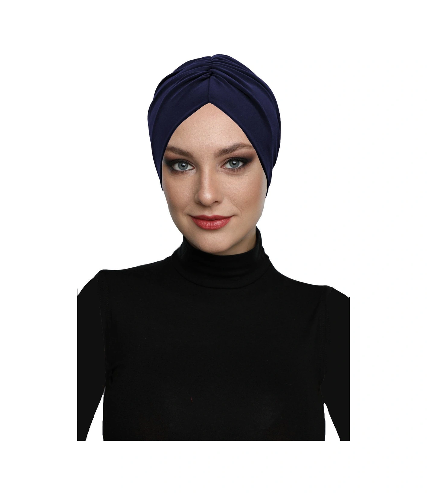 Büzme Çift Taraflı Lacivert Hazır Türban Tesettür Havuz Bonesi Lacivert