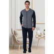 By Mecit 2774 Lacivert Önden Düğmeli Büyük Beden Erkek Pijama Takımı Lacivert