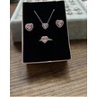 Byantep Pembe Kalpli Kolye +küpe+ Yüzük Set Gri