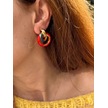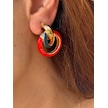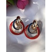 Bymerve Abiye Tasarım Halka Gold Tabaka Kırmızı 3,5cm Kadın Çelik Küpe Kırmızı