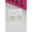 Byzeynaaksesuar Kadın Özel Tasarım Zirkon Taşlı 2'li Minimal Küpe 0021 Çok Renkli