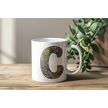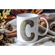 C Baş Harf Çiçek Desenleri İle Natural Tarz Kupa Bardak - Kişiye Özel Çiçekli Kahve Çay Bardak - Beyaz