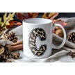 C Baş Harf Leopar Desenli Kupa Bardak - Kişiye Özel Feminen Konsept Hediye - Vahşi Hayvan Desenli Beyaz