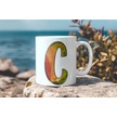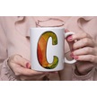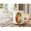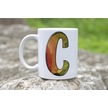 C Harf Yaprak Renkleri İle Kupa Bardak - Kişiye Özel Alfabe Harfli Bardak - Hediye Beyaz