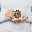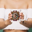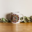 C Harfi Boho Bardak, Renkli Özel Tasarım Hediyelik Harfli Kupa, 330ml Porselen Beyaz