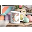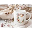 C Harfi Çiçekli Kupa Bardak - Soft Renk Çiçek Ve Kelebek Desenli Zarif Kahve Kupası - Bohem Beyaz