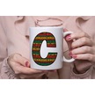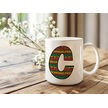 C Harfi Etnik Desenli Kupa - Afrika Tarzı Kahve Çay Kupası - Hediyelik - Black History Beyaz