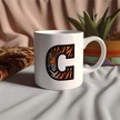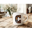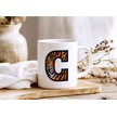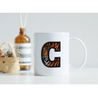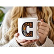 C Harfi Kaplan Figürlü Nakış Desenli Kupa Bardak - Kişiye Özel Vahşi Hayvan Desenli Kupa - Hediye Beyaz