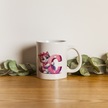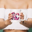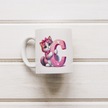 C Harfli Bardak, Sevimli Kedili Pembe Tasarım Bardak, Arkadaşa Aileye Hediye Porselen Beyaz