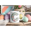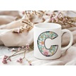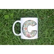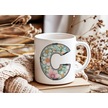 C Harfli Pastel Çiçek Desenli Kahve Kupası - Kişiye Özel Çiçekler Koleksiyonu Bardak - Hediye Beyaz