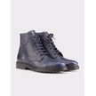 Cabani Hakiki Deri Lacivert Bağcıklı Fermuarlı Erkek Günlük Bot Lacivert