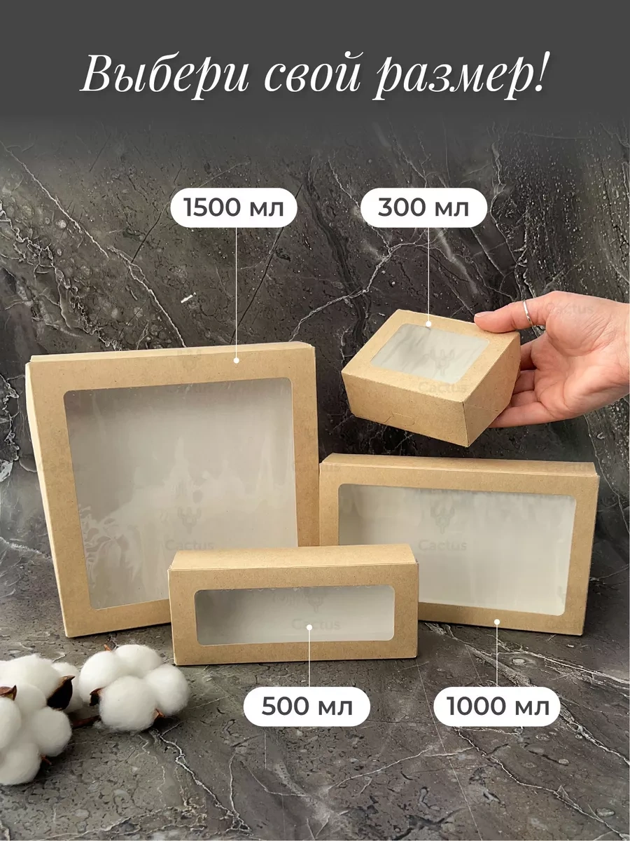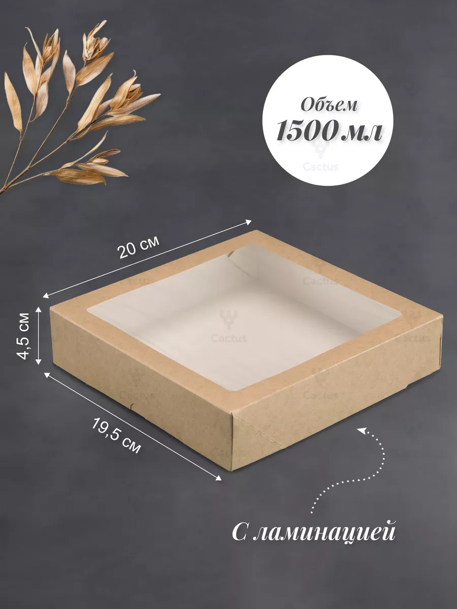Cactus Cam Pencereli Kraft Kutu Ambalaj 1500 Ml 50 Adet. 208474280