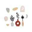 Cajuart 9 Parça Dekoratif Ahşap Sanasal Vazo Çiçek Pastel Renk Duvar Tablo Seti Ahşap Dekor