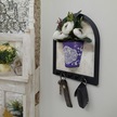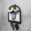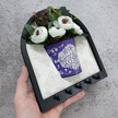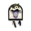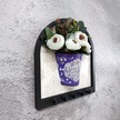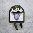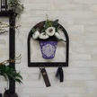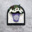 Cajuart Ahşap Motifli Mor Saksı İçinde Beyaz Yapay Çiçek Askılık Duvar Dekoru