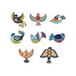 Cajuart Dekoratif 8 Parça Karışık Motifli Kuşlar Ahşap Duvar Tablo Duvar Dekoru