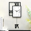 Cajuart Kare Tasarım Geometrik Roma Rakamlı Sallanan Sarkaçlı Duvar Saati Sessiz Siyah - Beyaz