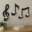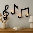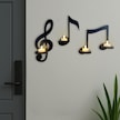 Cajuart Siyah Ahşap Notalar 3 Parça Led Mumlu Duvar Dekoru Dekoratif Tablo
