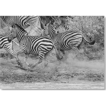 Cakasepetim Su Kenarında Kaçan Zebralar Siyah Beyaz Ahşap Mdf Tablo