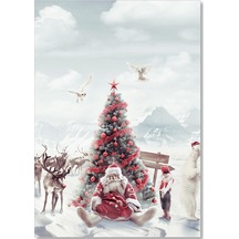 Cakasepetim Yılbaşı Ağacının Önündeki Yorgun Noel Baba Ahşap Mdf Tablo