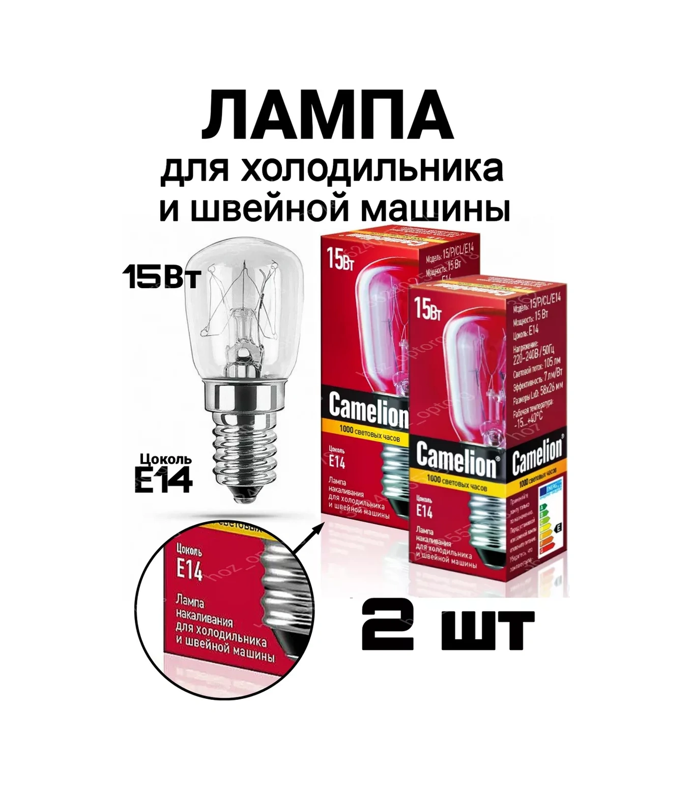 Camelıon Buzdolabı İçin Lamba, E14 Duy - 2 Adet 206743972