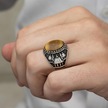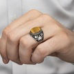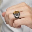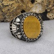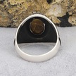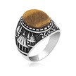 Cami Motifli Kaplan Gözü Taşlı 925 Gümüş Erkek Yüzük