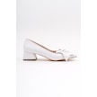 Camila Beyaz Fiyonklu 4cm Sivri Burun Topuklu Ayakkabı Beyaz