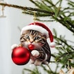 Canlı Renk Süper Sevimli Araba Kedi Santa Charm Akrilik Şapka Yavru Noel Ağacı Asılı Dekorasyon H