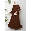 Çapraz Bağlamalı Bürümcük Elbise 1617 - Kahve Kahve
