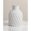 Çapraz Çizgili Oymalı Dekoratif Vazo El Yapımı Şık Tasarım Beyaz