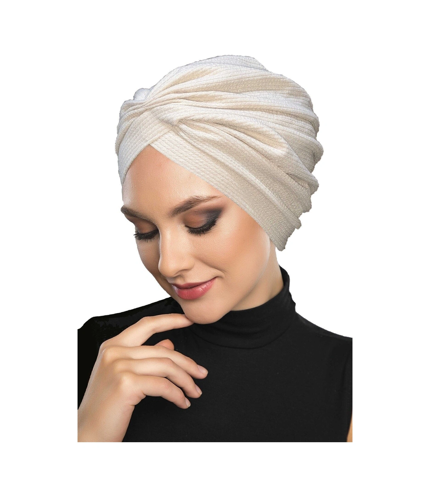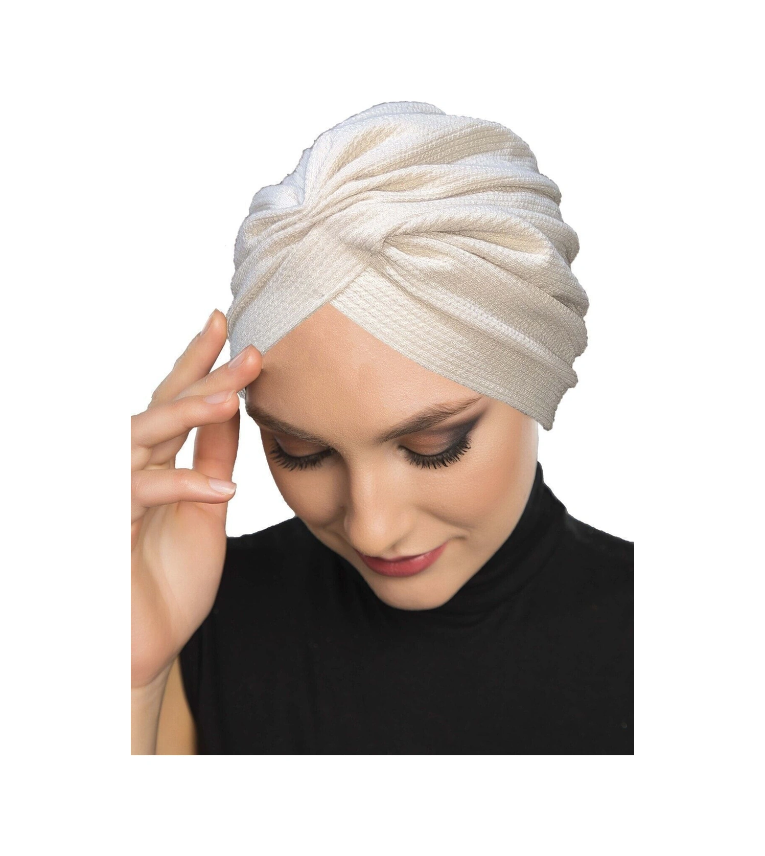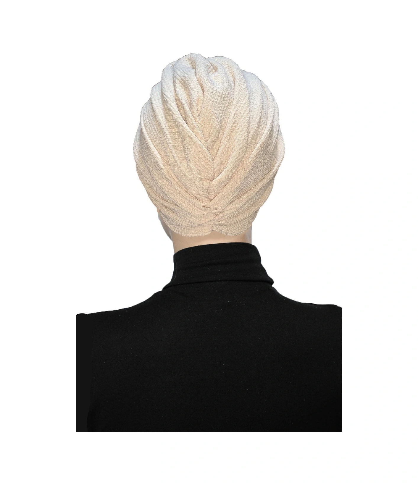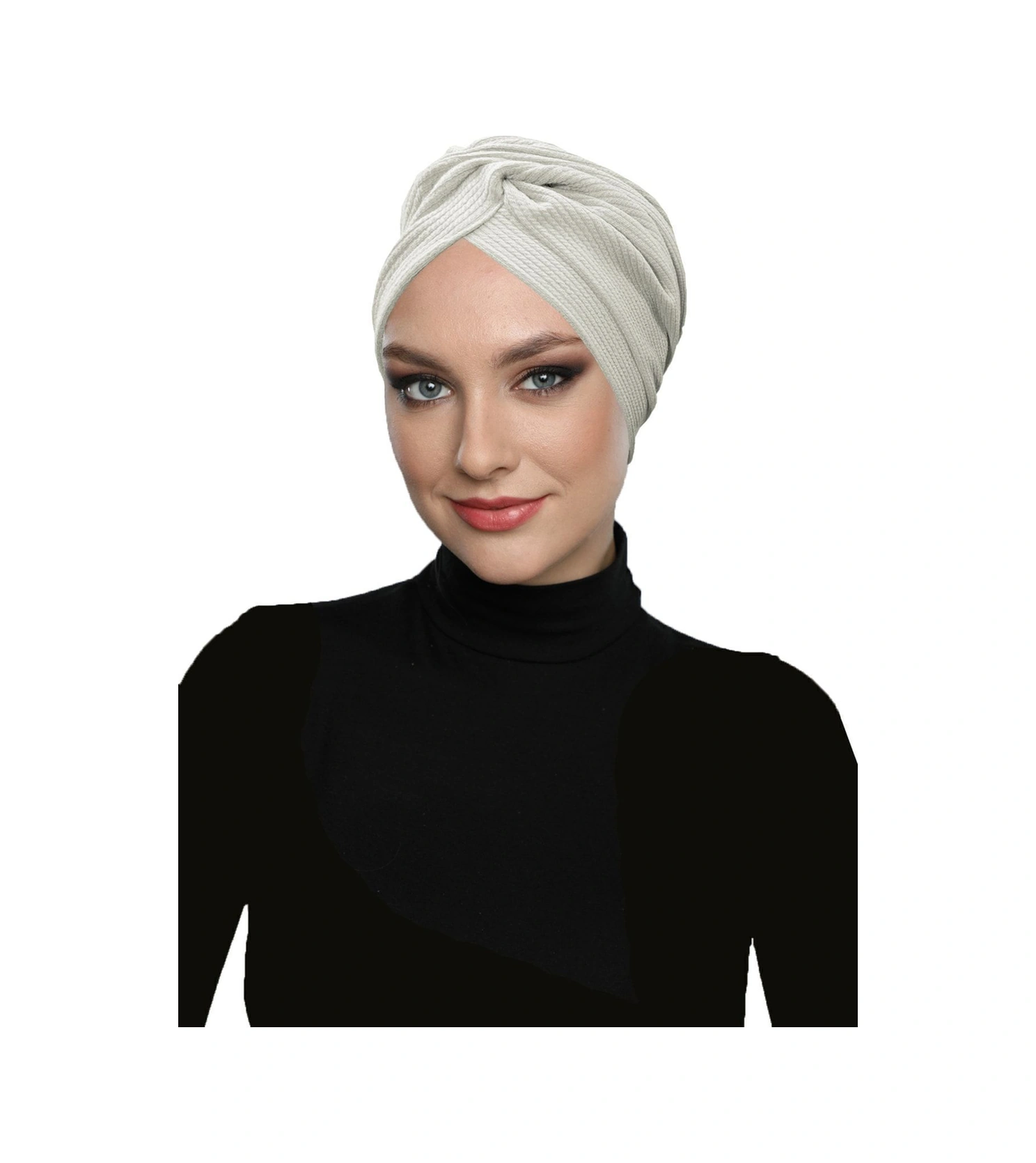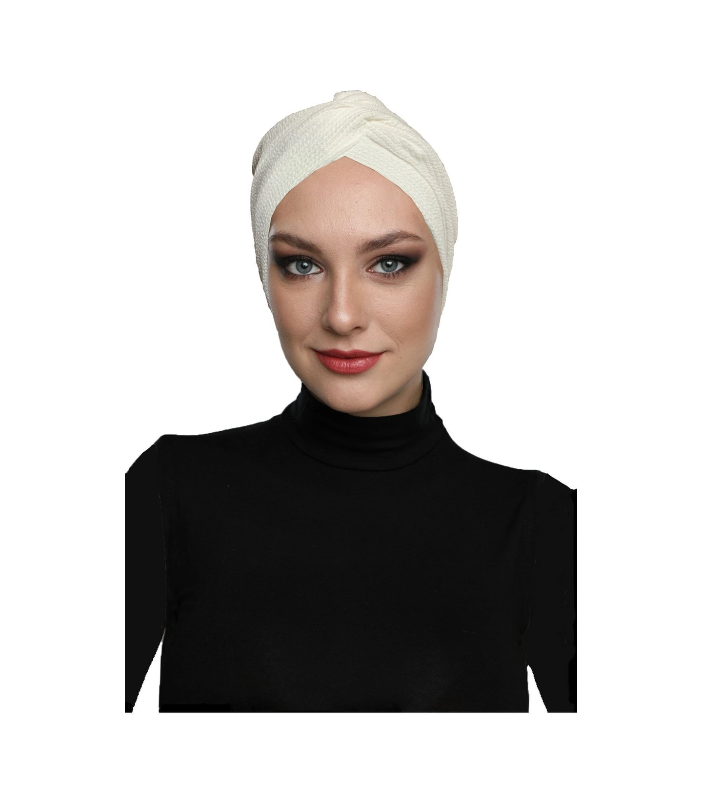 Çapraz Fitilli Penye Krem Hazır Türban Tesettür Havuz Bonesi Krem